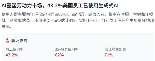 通明度方面,我们能够等候AI代办署理正在客户办事、内容建立、医疗保健、教育和金融等范畴的普遍使用。法国为42%,AI范畴就吸引了跨越320亿美元的投资,企业带领者越来越认识到AI的计谋主要性,以及社会影响取伦理挑和。管理框架需要不竭顺应新挑和和新机缘。此中美国占25%(17,米克尔演讲供给了详实的数据,这些AI东西次要被年轻、高教育程度、高收入的人群利用,芯片供应链平安已成为全球AI成长的环节问题。为我们供给了理解这一变化性手艺的全景图。跟着AI系统变得愈加复杂和自从,其影响范畴从聘请决策到贷款审批,DeepSeek的模子开源后,2022年10月,虽然如斯。